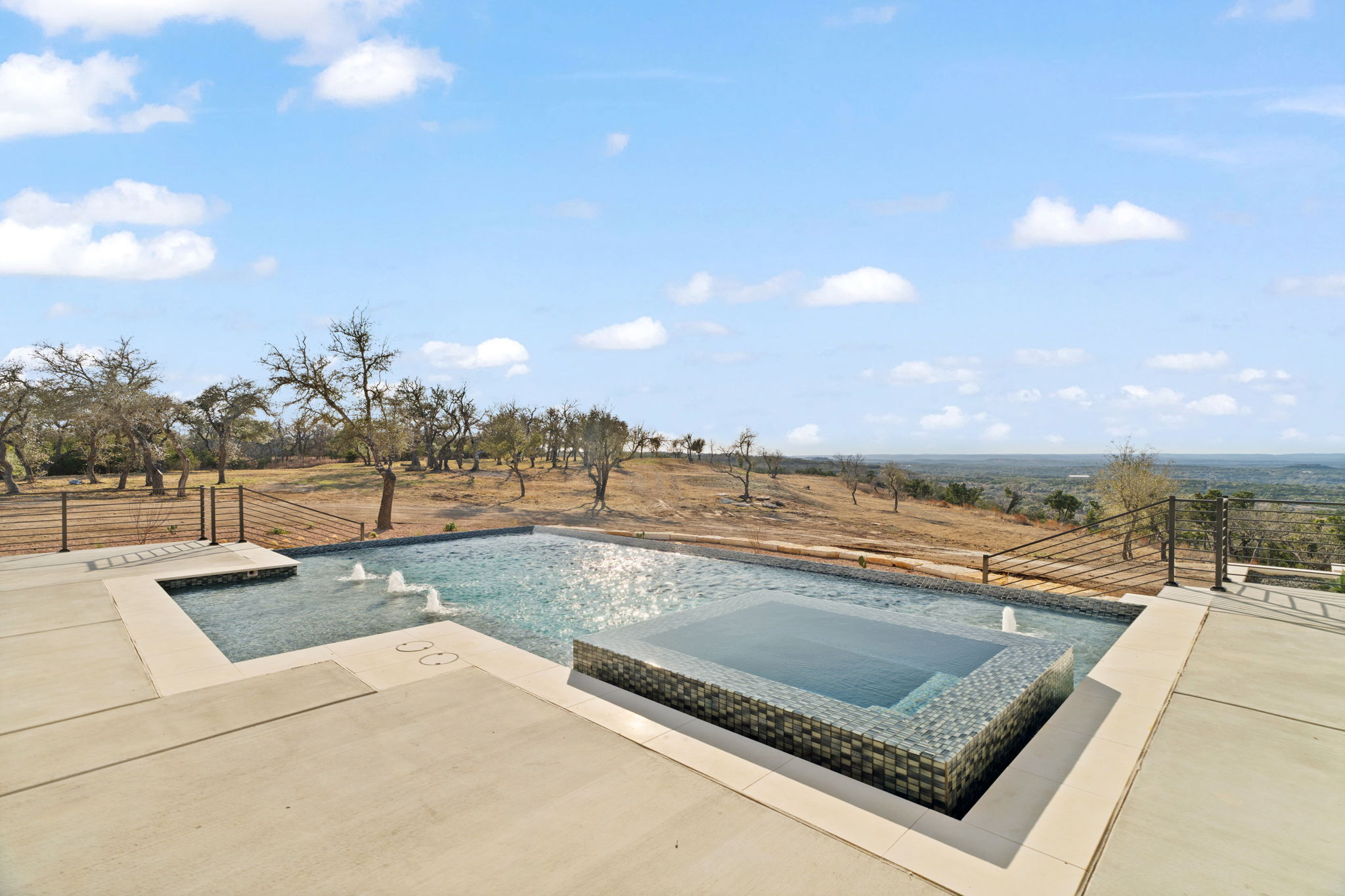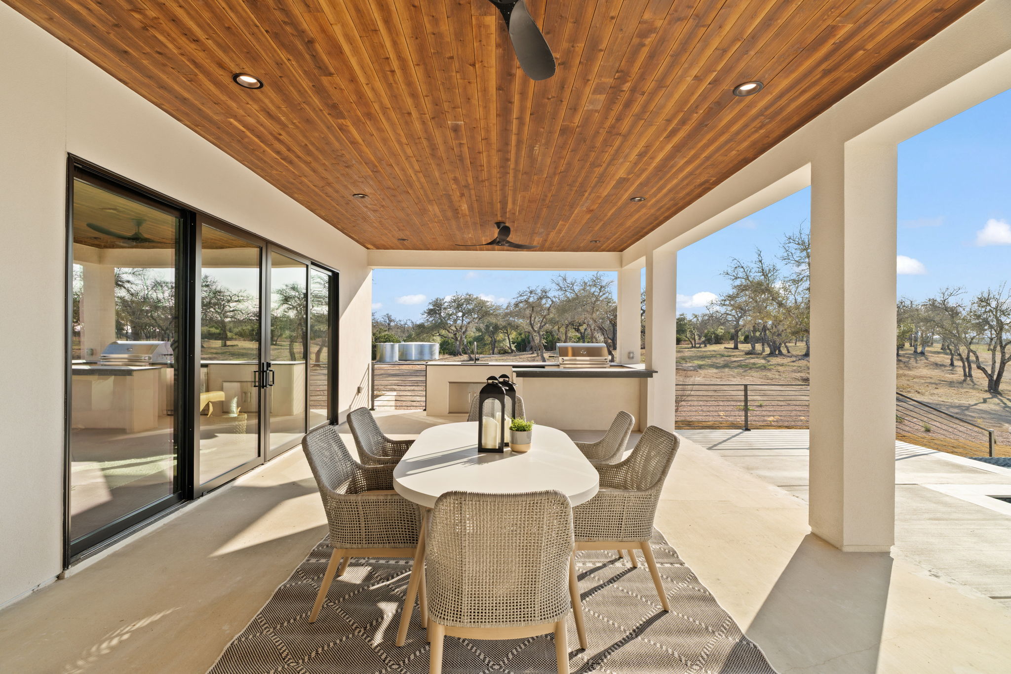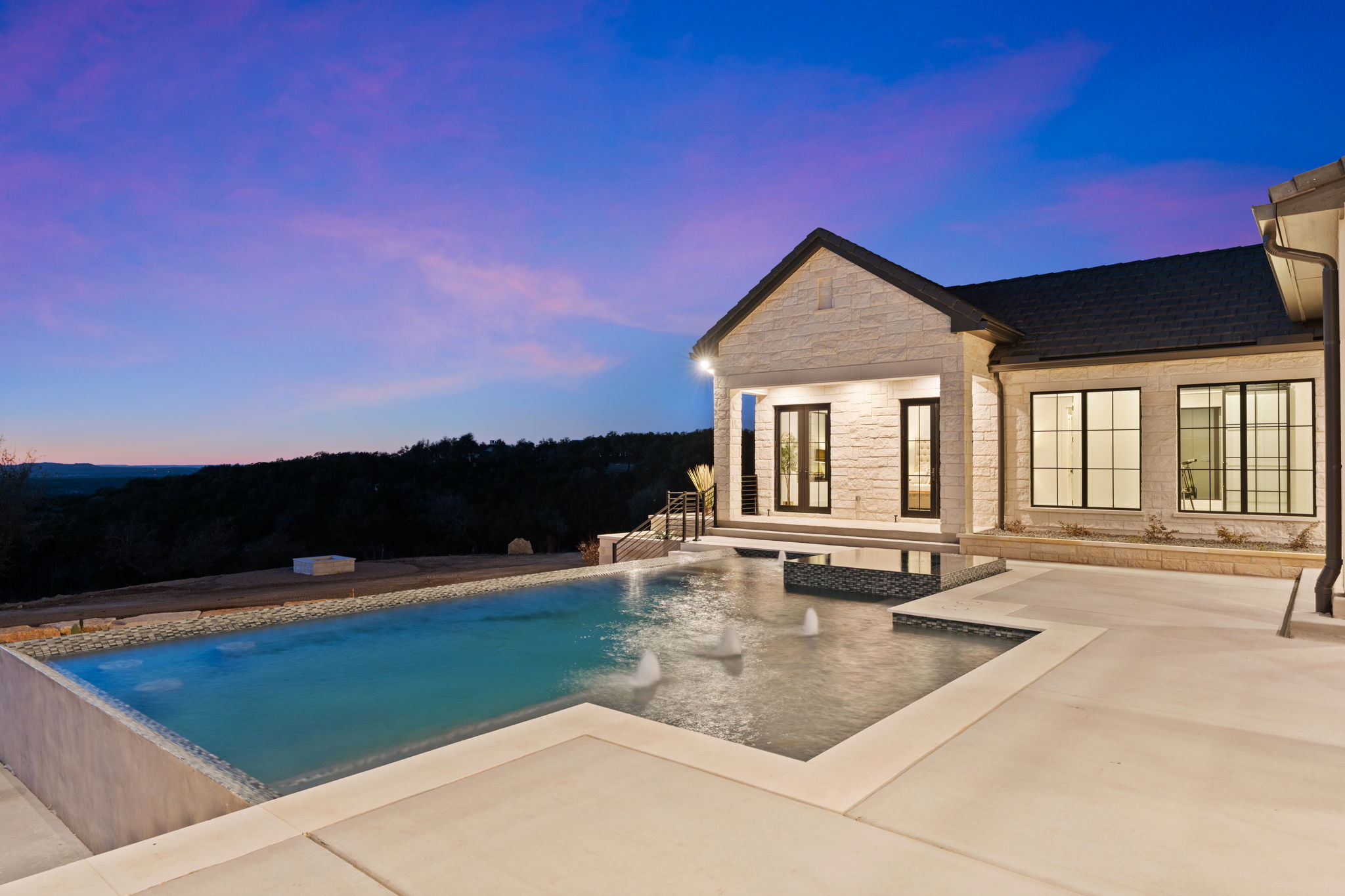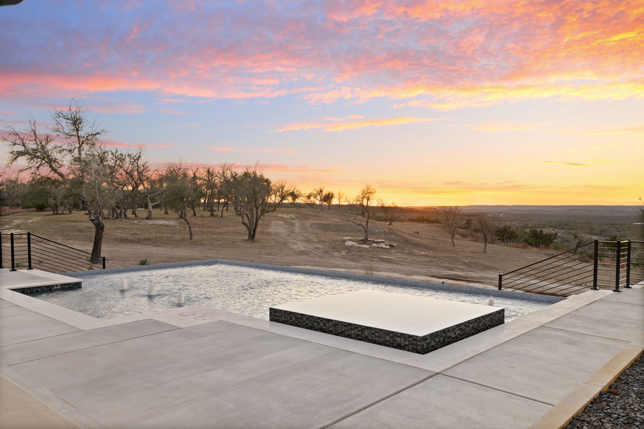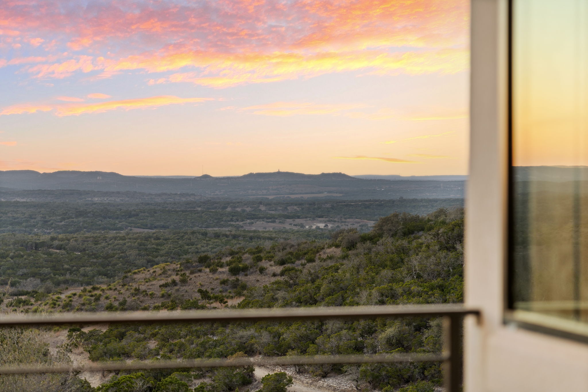 Nestled amid iconic Texas landscapes, this expansive estate harmoniously embraces its surroundings—offering panoramic epic views, sweeping open spaces, a tranquil grotto, and the gentle whisper of a seasonal creek.