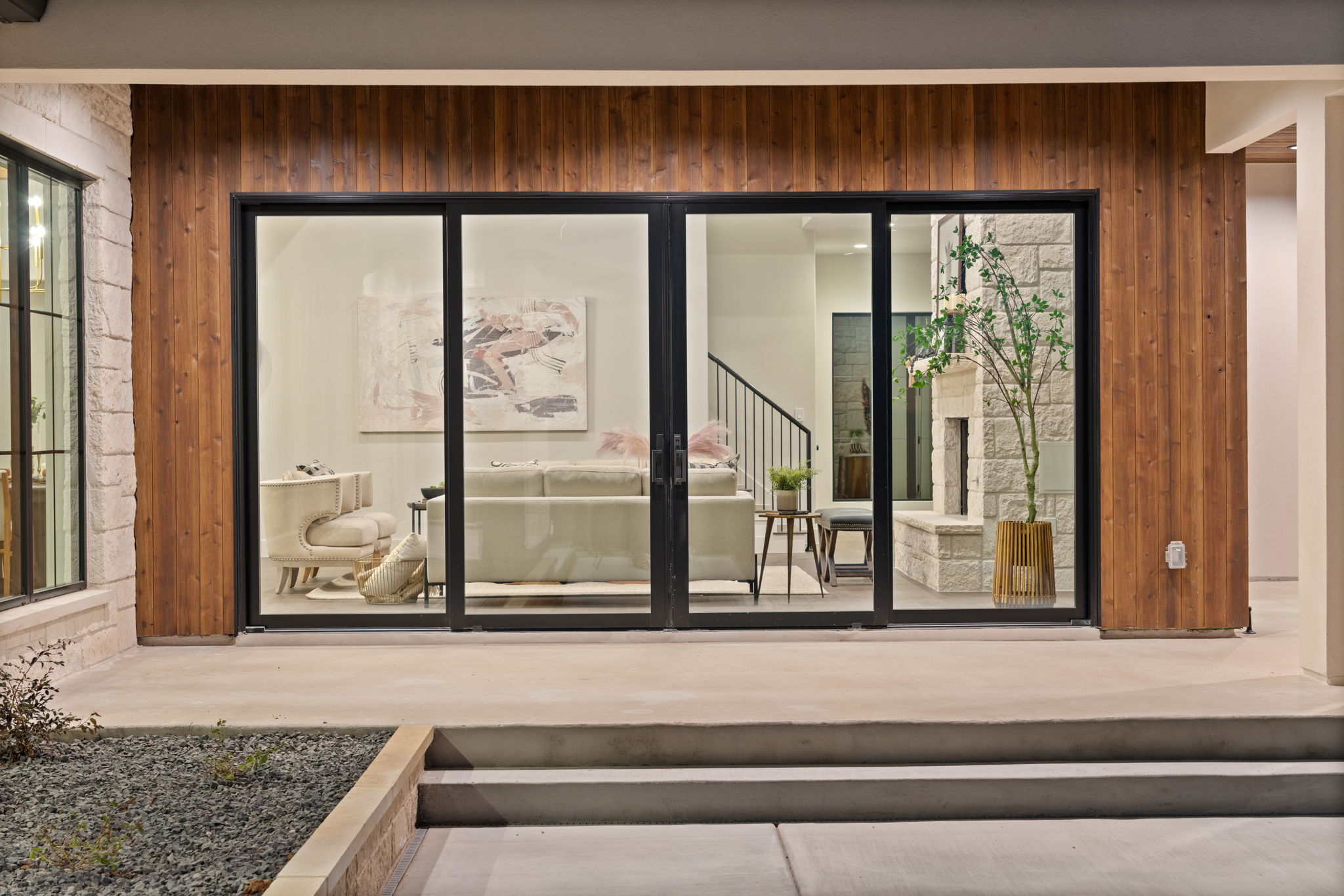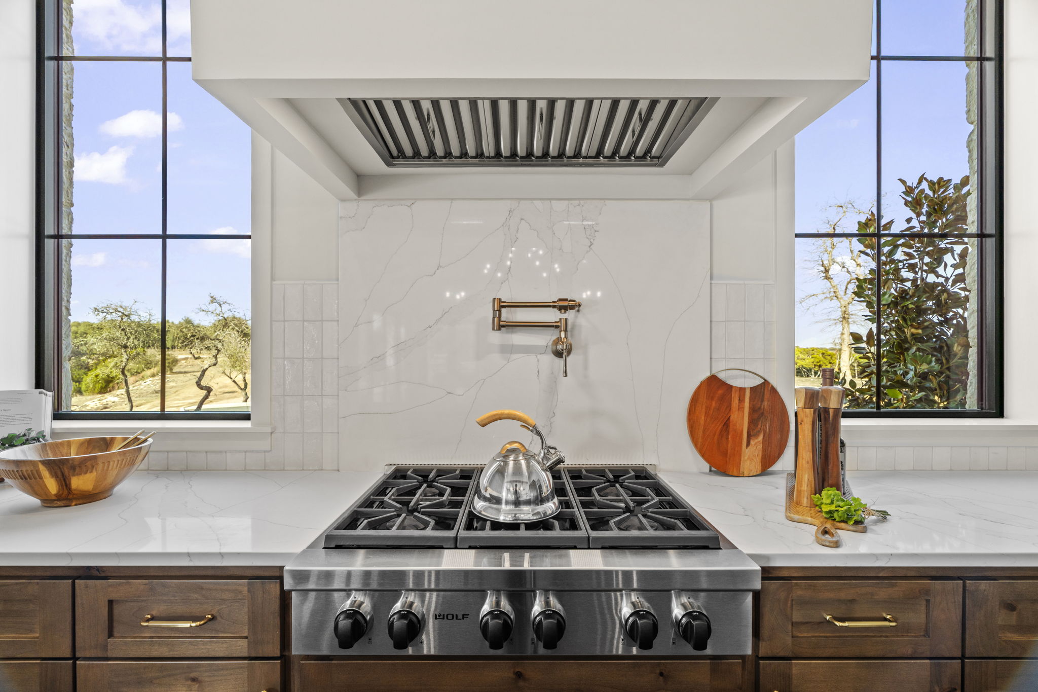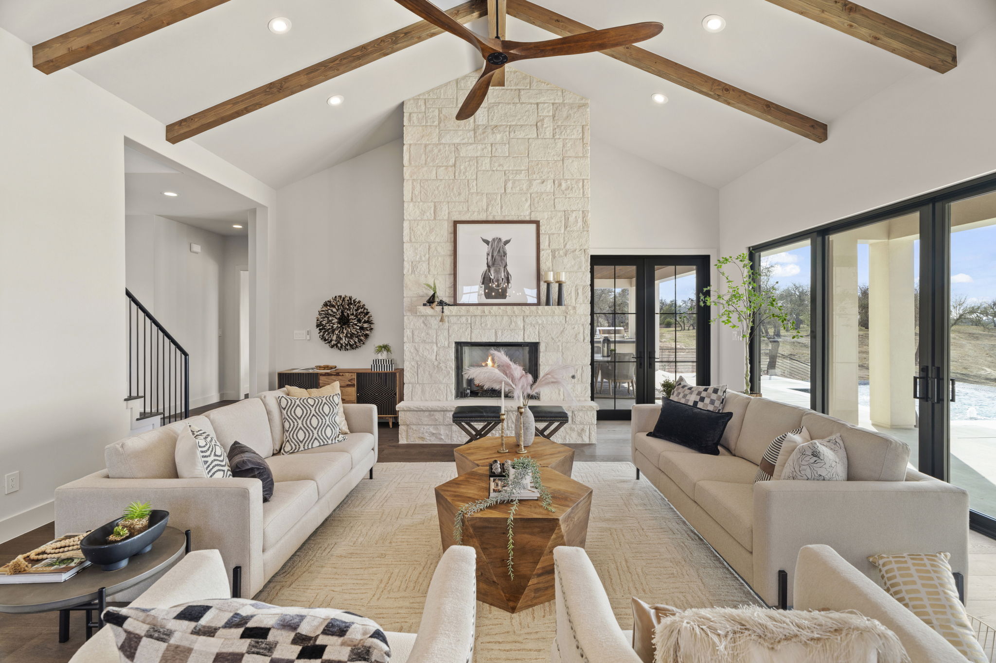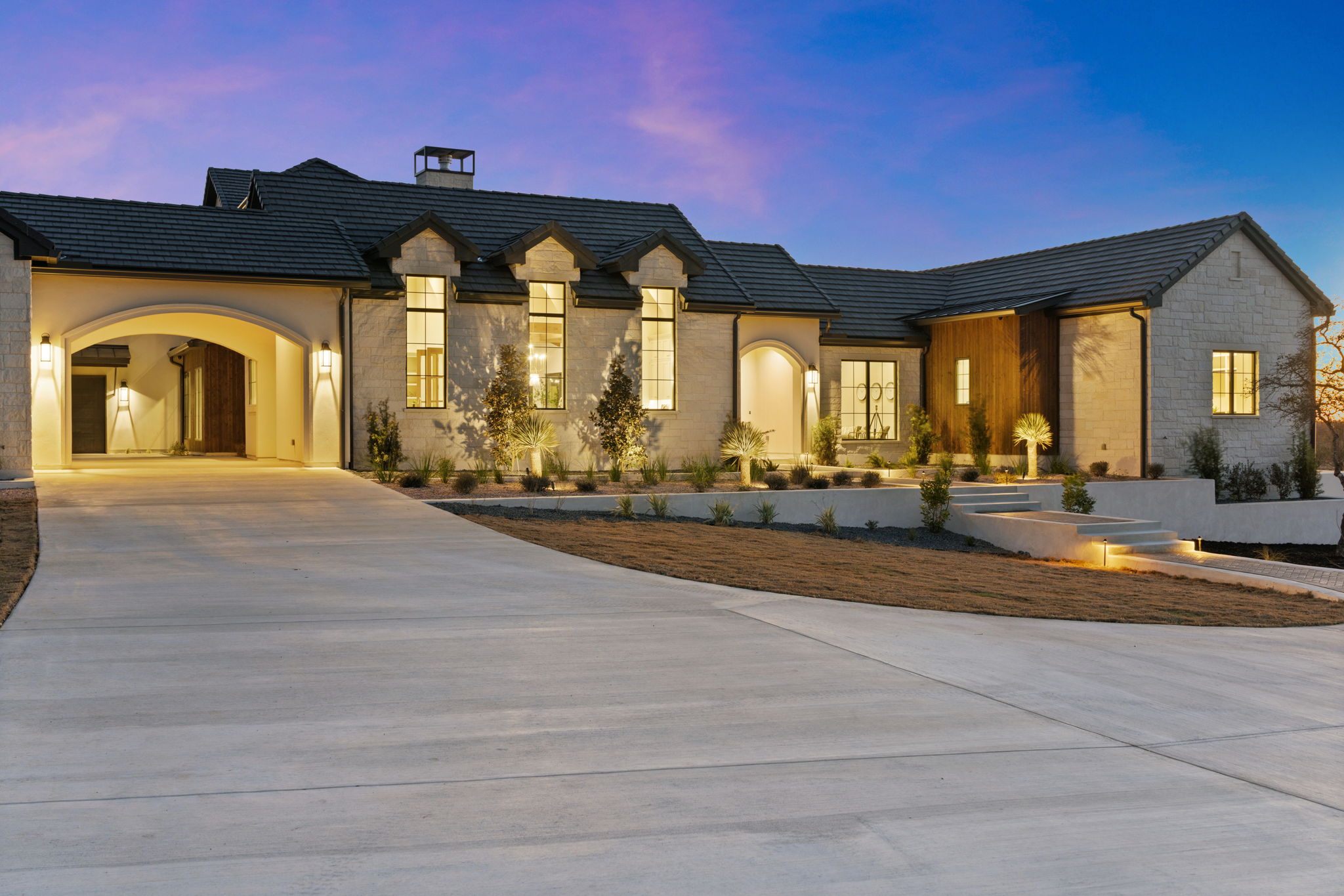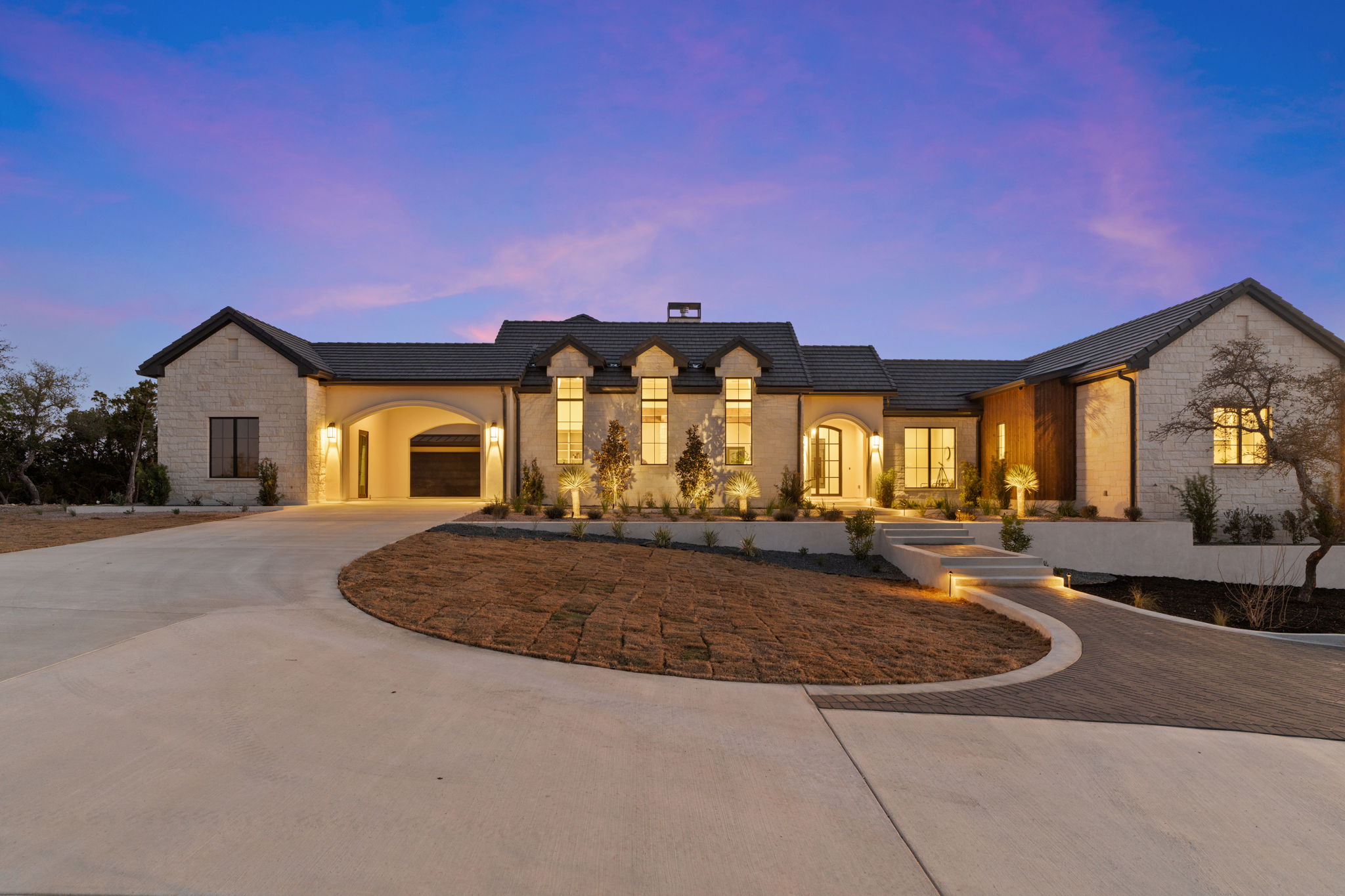 Nestled amid iconic Texas landscapes, this expansive estate harmoniously embraces its surroundings—offering panoramic epic views, sweeping open spaces, a tranquil grotto, and the gentle whisper of a seasonal creek.