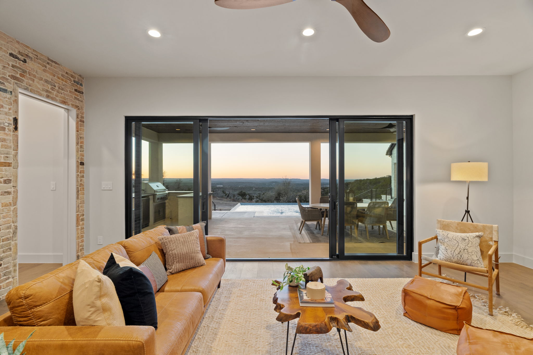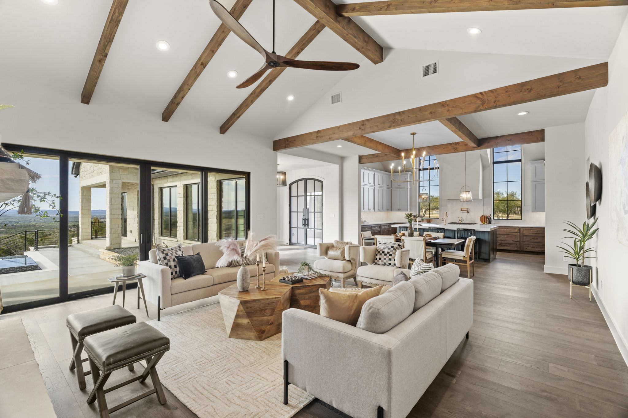 The crown jewel remains the unparalleled outdoor retreat: a stunning resort-style pool with cascading features, expansive covered and open-air lounging spaces, and a fully equipped gourmet outdoor kitchen—designed for seamless entertaining under the vast Hill Country sky.